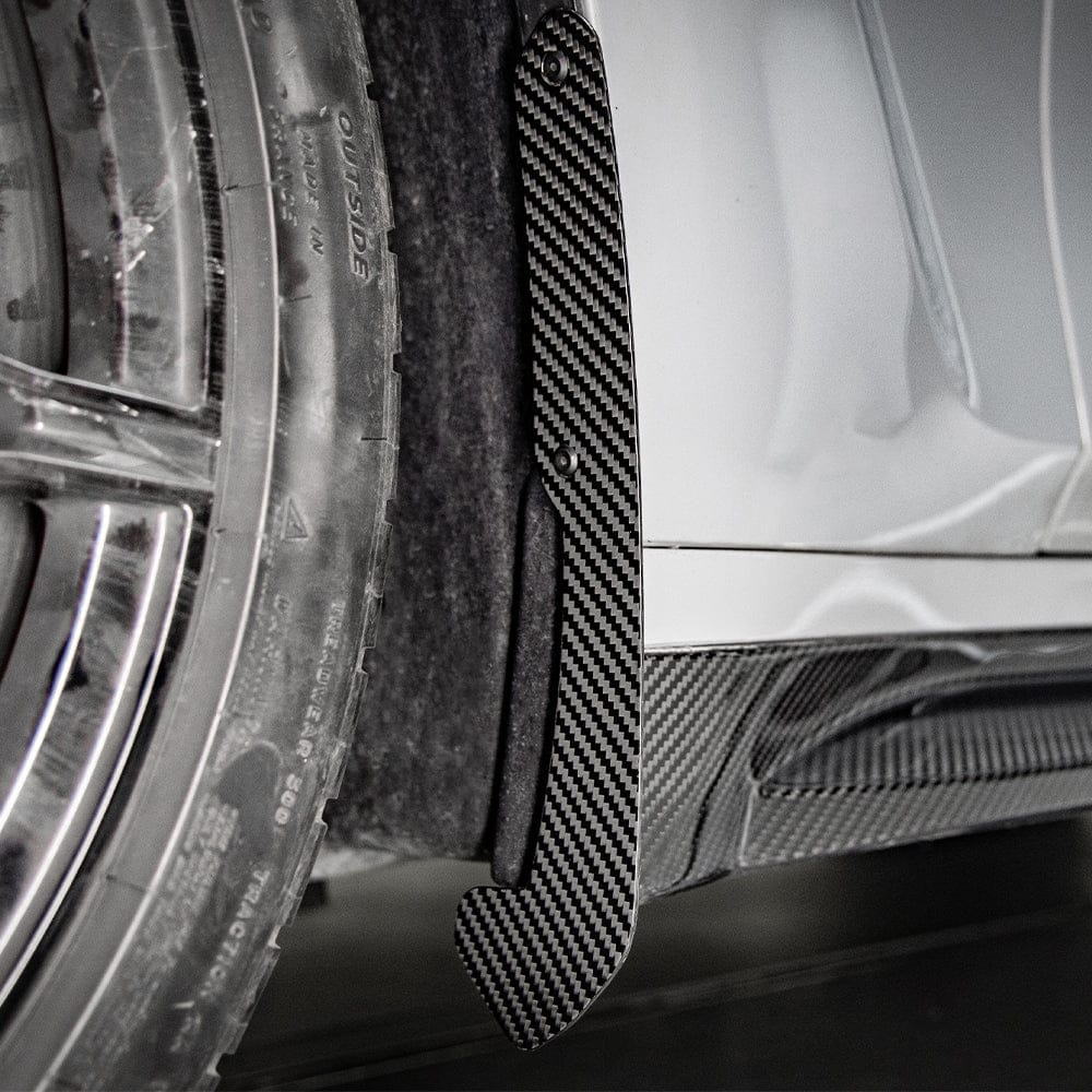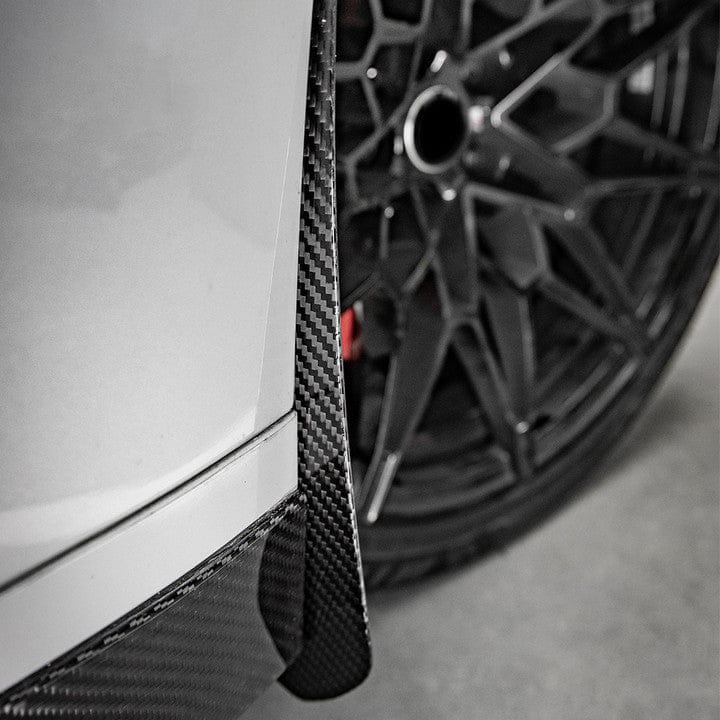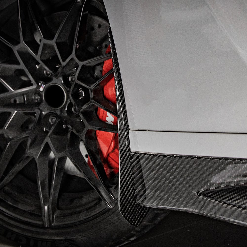 The Perfect “Protective Upsell” The aggressive wide-body stance and sticky tires of the G80/G81 platform naturally kick up severe road and track debris, which quickly damages the factory paint on the doors and side skirts. For your sales team, these carbon mud flaps represent the ultimate, effortless “protective upsell.” We highly recommend bundling these with every carbon fiber side skirt sale to protect the client’s new aerodynamic parts while instantly boosting your shop’s revenue.