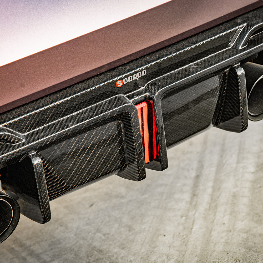 The Integrated Brake Light Advantage (Maximize Ticket Size) This V1 diffuser is equipped with a central integrated LED brake light, adding both safety and striking visual impact. For your tuning shop, this motorsport-inspired addition is a highly desirable premium upsell. It allows your sales team to command higher retail margins while generating additional electrical wiring labor revenue from track-focused M4 owners.